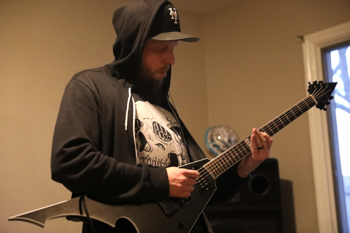 Guitarist Tommy Miller playing his guitar while practicing with his group "Void King" in their home March 21, 2024 in Muncie, Ind. Paola Fernandez Jimenez, Ball Bearings