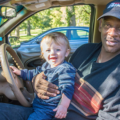 “Miss Sara! I can’t go upstairs!” Class is over, and Jonah has tied his shoes together. He is a boy...